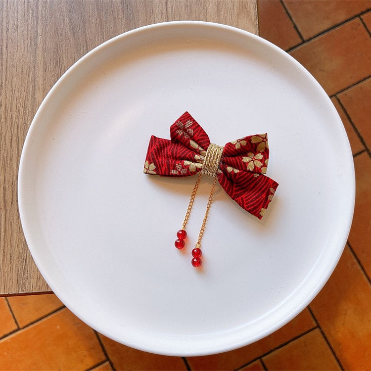 1 x Handmade Kimono Fabric Hair Bows - Red