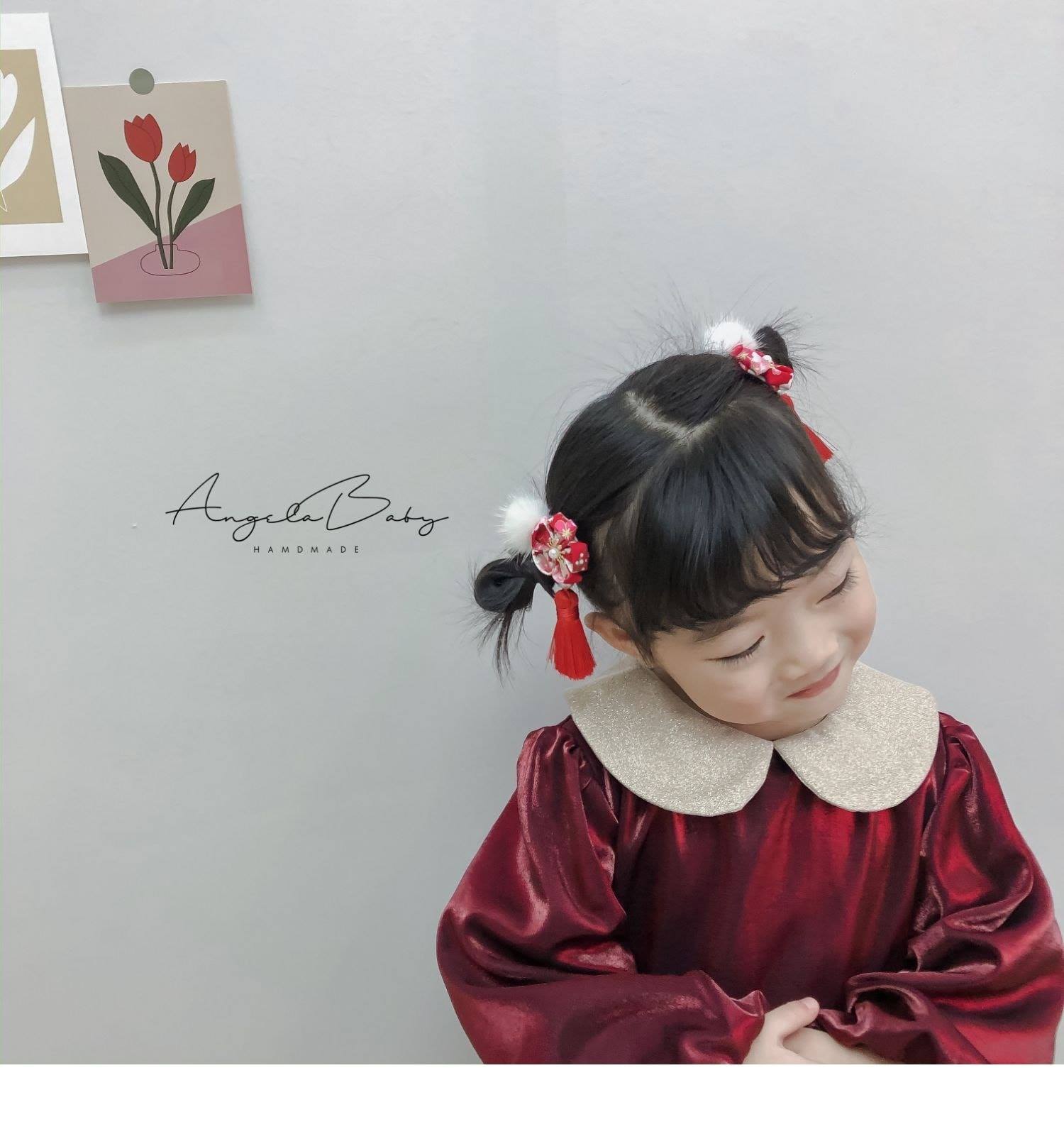 2 x Pom Pom Floral Hair Clips with tassel - Pink