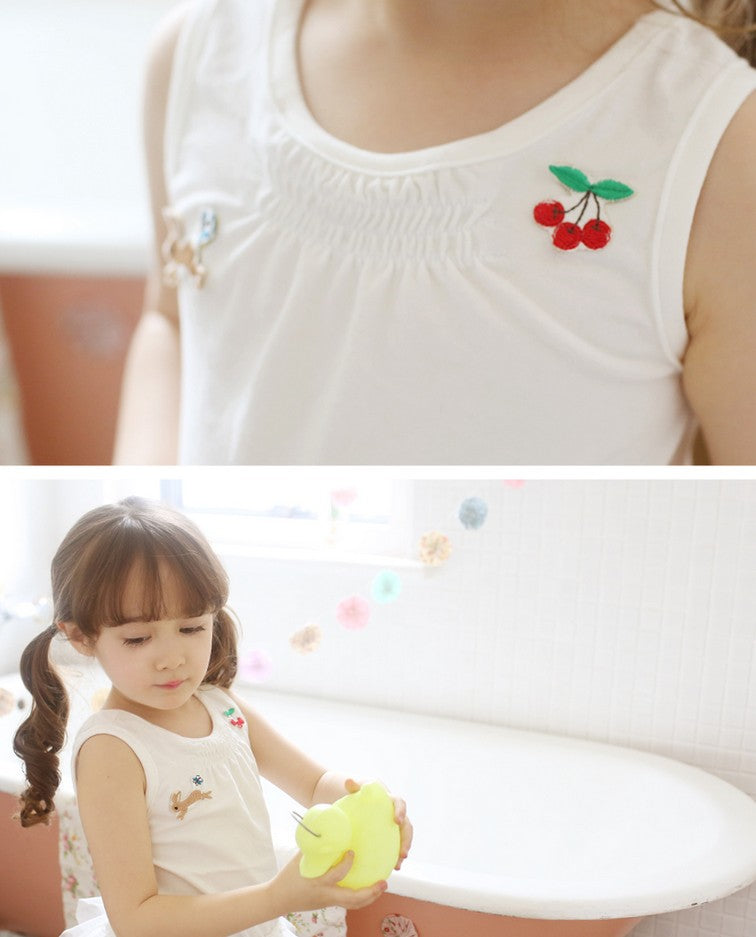 Cherry Bunny Embroidered Tulle Blouse (White)
