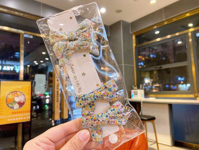 4 x Japanese Style Floral Hair Bows - Green/ Blue