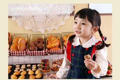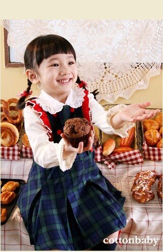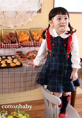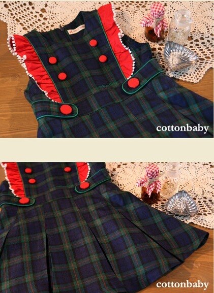 Luxury Girls Navy Green Checked Dress (Made in Korea)